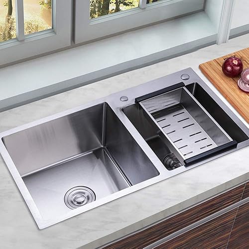 Edelstahlspüle Spülbecken 2 Becken Küchenspüle Einbauspüle 78×43×21cm Spühlbecken Doppelbecken Spüle mit Über und Ablaufgarnitur