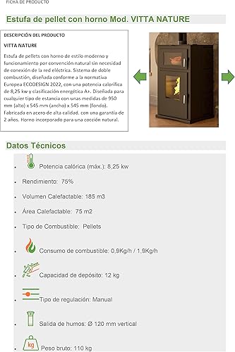 Joima Vitta Nature Pelletofen mit Backofen ohne Strom 8 kW. Pelletofen stromlos