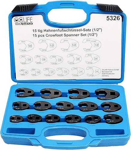 CCLIFE 19tlg Hahnenfußschlüssel Hahnenfuß Schlüssel Steckschlüssel Drehmoment 1/2' 3/8' Außenvierkantantrieb | 8-32mm