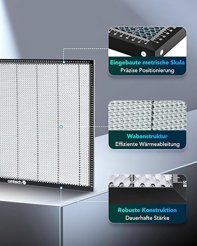 OMTech Laser Honeycomb Arbeitstisch Platte 400x400x21mm Wabenförmiger Arbeitsplatte für Laser Graviermaschine, Metall Wabentisch 16x16 Zoll, mit Skalenlinien Aluminiumplatte, Honeycomb Wabengitter