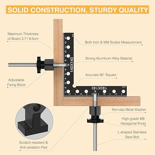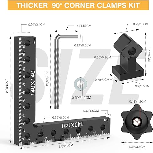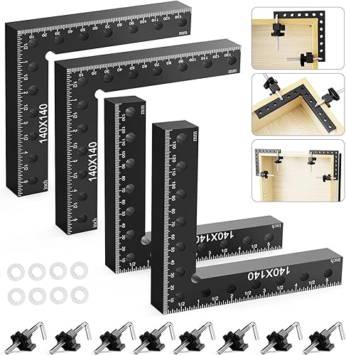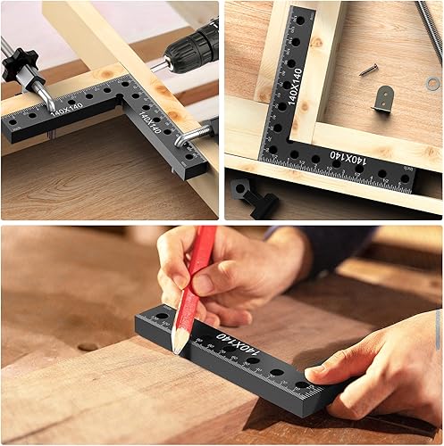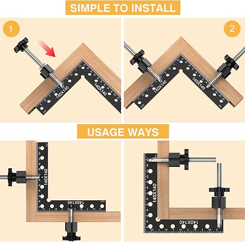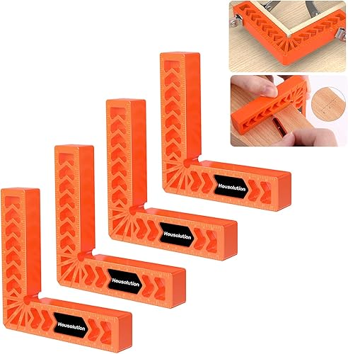 Housolution 90-Grad Winkelspanner Rechtwinklige Klemmen, 14 x 14 cm Aluminiumlegierung Positionierwinkel für Schränke Boxen Bilderrahmen Holzarbeiten, Rot, 4 Stück