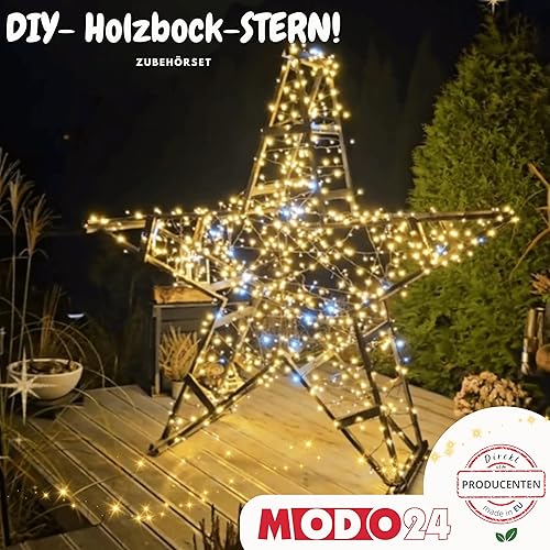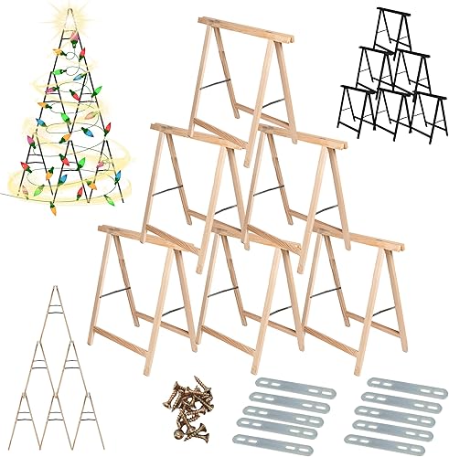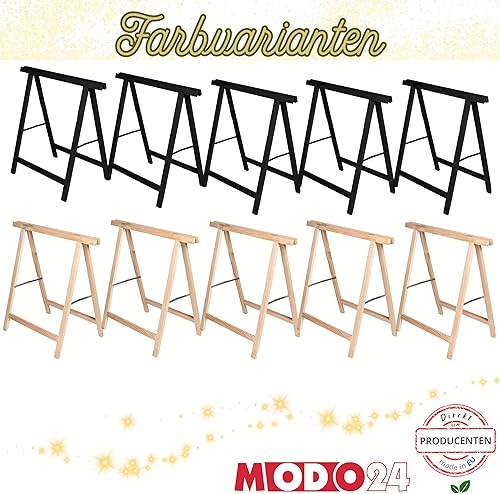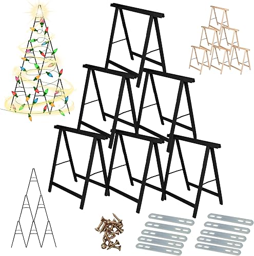 MODO24 Sägebock Holzbock, Klappbock Arbeitsbock, 6er-Set inklusive Montageteile, DIY Weihnachtsbaum, Tannenbaum SET, Tapezierbock Montagebock Unterstellbock, Baum Abmessungen 215x130x73 cm, Schwarz