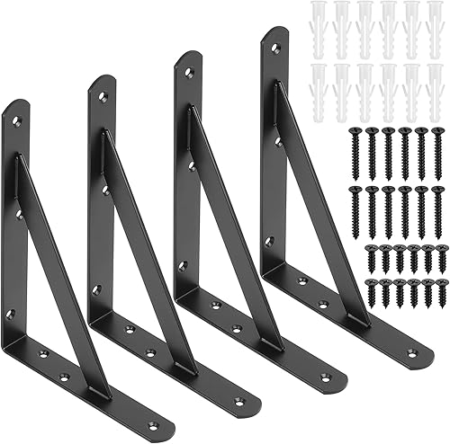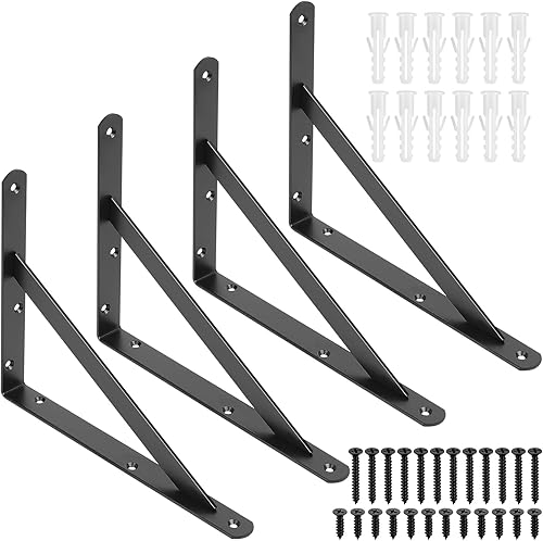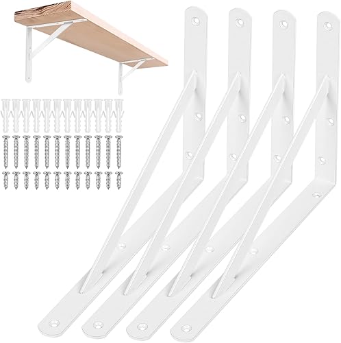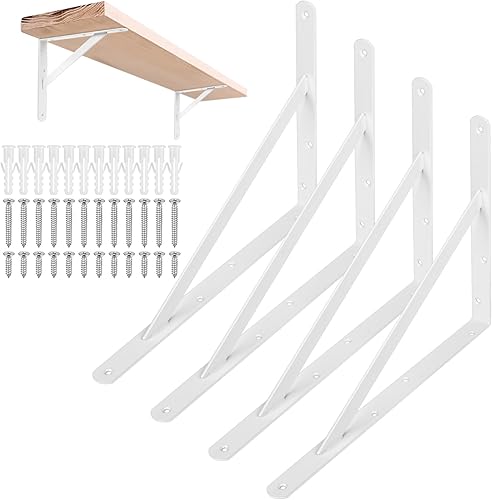 4 STK Regalhalterungen, Regal Winkel, Regalwinkel Weiß, Regal Halterung Wandhalterung Regal, 90 Grad Regalträger, Metall Schwerlastträger, Dreieckig Winkelträger für Wandmontage, 255x200x25 mm