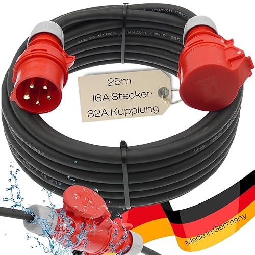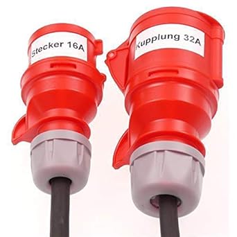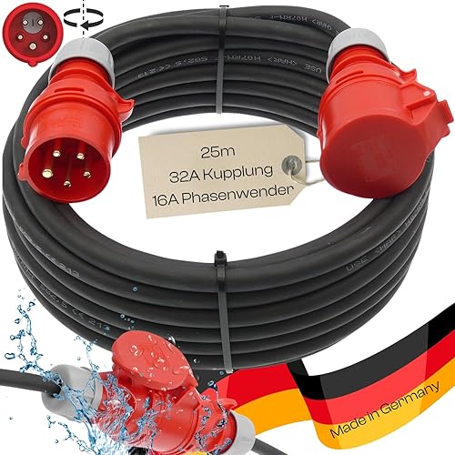 netbote24 CEE-Adapterkabel Starkstromkabel Verlängerungskabel Kraftstromkabel Adapterleitung 16A PCE-Stecker auf 32A Dose Buchse 5 polig H07RN-F 5X2,5 400V mit Phasenwender 10m