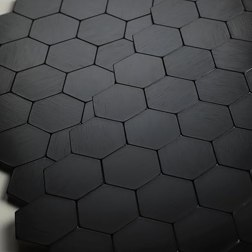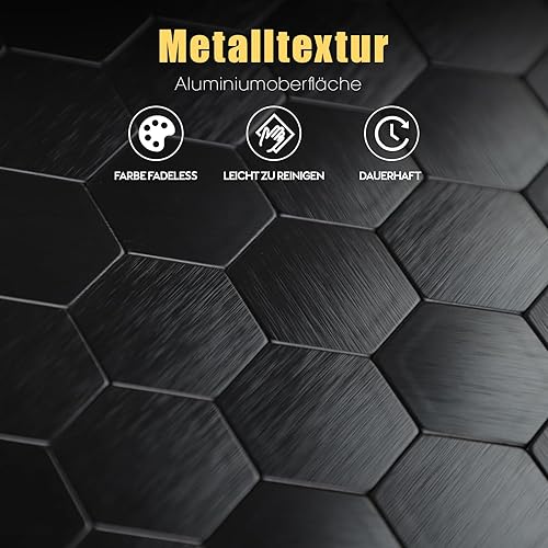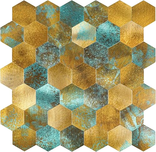 Selbstklebende Klebefliesen für Küche Bad, Hexagon Mosaik Wandfliesen Metall Mosaikfliesen (6 Stück, Copper)