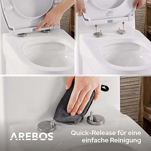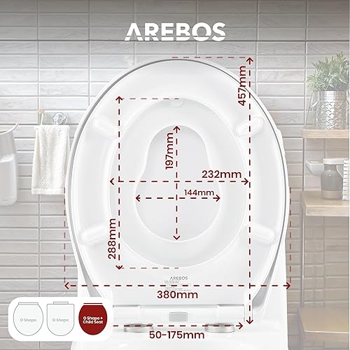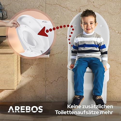 Arebos WC Sitz mit Absenkautomatik | 2in1 Toilettendeckel mit Kindersitz softclose | (max. Belastung 150 kg) | Toilettensitz mit Klodeckel | einfache Montage | Duroplast Klodeckel oval universell