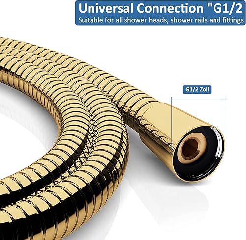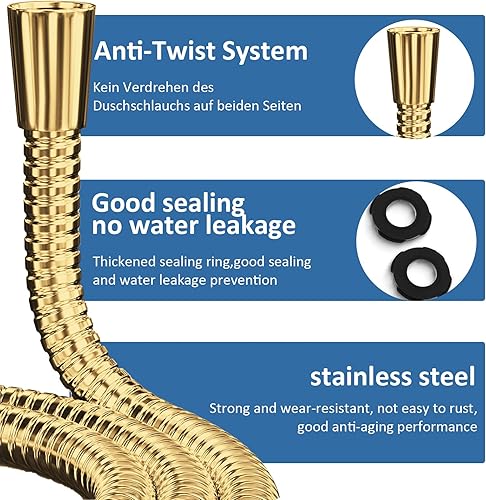 Acefy Goldner Duschschlauch 1,5m Qualitäts Brauseschlauch mit Knickschutz Gold Duschschlauch Edelstahl für Handbrause Duschbrause Standard Anschluss