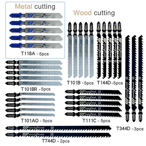 Nutabevr Professional 35-teilig T-Schaft Einnocken-Schaft Stichsägeblatt Set, für Metallschneiden und Holz, mit Kunststoff-Box, T118A/T144D/ T101BR/T101AO/T111C/T744D/T344D,für Spanplatten, Sperrholz