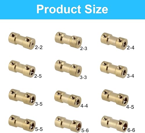 NHPY 12 STK Messing Wellenkupplung Wellenadapter,Motorwellenkupplung,Für RC Flugzeug Boot Motor 25x9mm,mit 50 STK M3 Schrauben,1 Inbusschlüssel