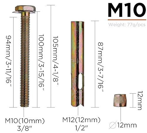 YoiYee M10 Dehnungsschrauben, Betonschrauben, Spreizdübel für Beton und Mauerwerk, 90 mm Länge, verzinkter Stahl, einfache Installation und sicherer Halt für Industrie und Bau, 5 Stück