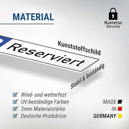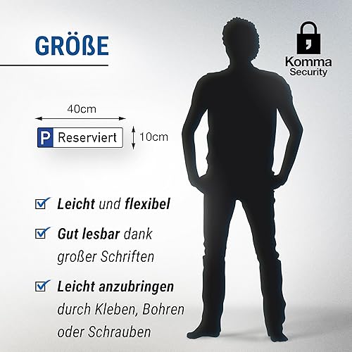 Komma Security Parkplatz Reserviert Schild 40 x 10 cm Hinweisschild Privatparkplatz Privatgrundstück Parkplatzschild Reserviert - Parkplatz freihalten vermietet Parkverbot Falschparker