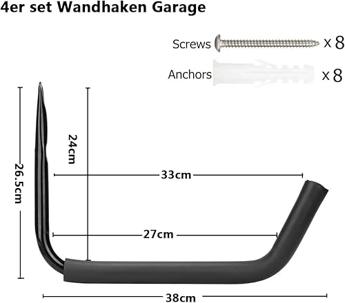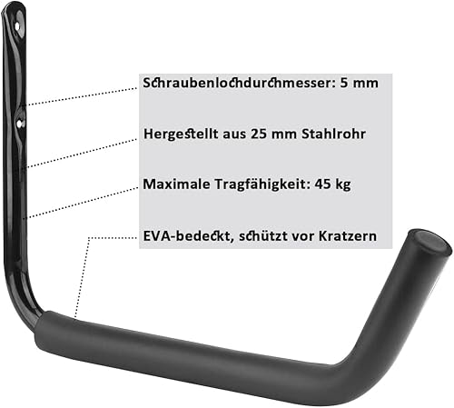Vlio Wandhaken Garage Schwerlast-Gerätehalter Leiter Haken, Storage Hanger Organizer für Kajaks Leiter Fahrrad Kanu Klappstühle für Schutz, Tragkraft 45 kg, 4 Stück