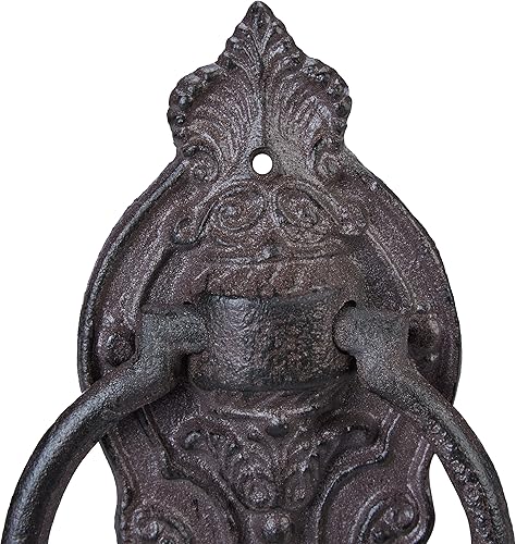 Relaxdays Türklopfer antik, Anschlagring für Haustür, Landhausstil, Gusseisen, H x B x T: 25,5 x 10,5 x 2,5 cm, braun