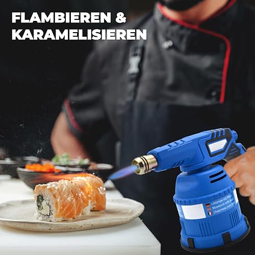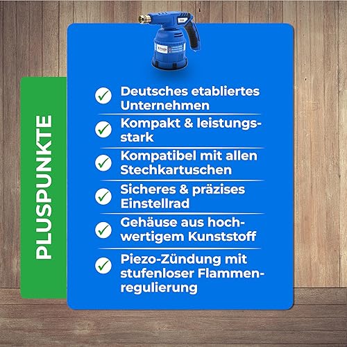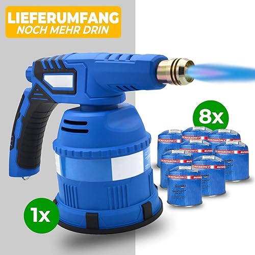 B Camping Germany ® Gasbrenner mit Kartusche– Küchenbrenner max. 1300°C Temperatur – Lötlampe – Bunsenbrenner Küche (8x190 g Gaskartuschen)
