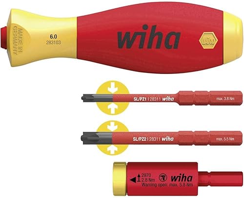 Wiha Juego de adaptadores de par de apriete easyTorque electric 2,8 Nm con soporte slimVario® y slimBits SL/PZ, de 4 unid. (41478)