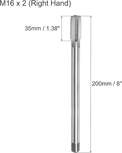 QUARKZMAN Metrisches Gewindebohrer M16 x 2 H2 200mm Extra langer gerader Flöten-Gewindeschneidemaschine Gewindebohrer Gewindeschneidwerkzeug