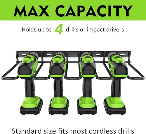 ENONCI Werkzeugspeicher Aufbewahrung Elektrowerkzeug Organizer,4 Schlitzen Bohrhalter Wandmontage Garage Werkzeugregal Metall, Werkzeugaufbewahrung und Organisation