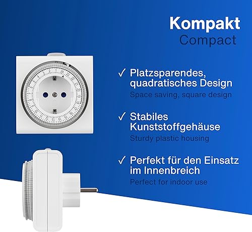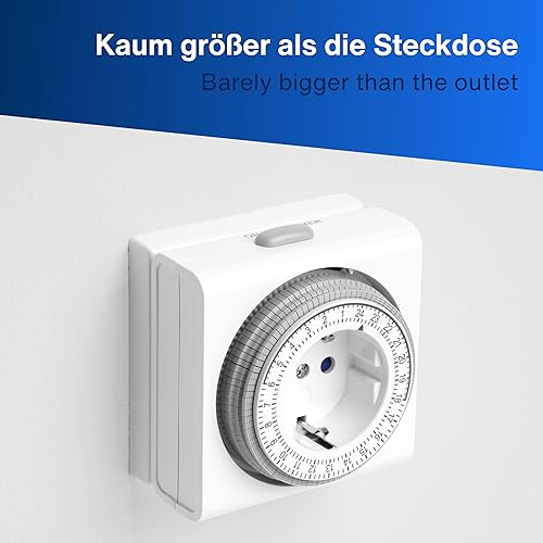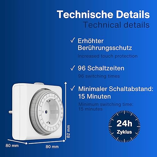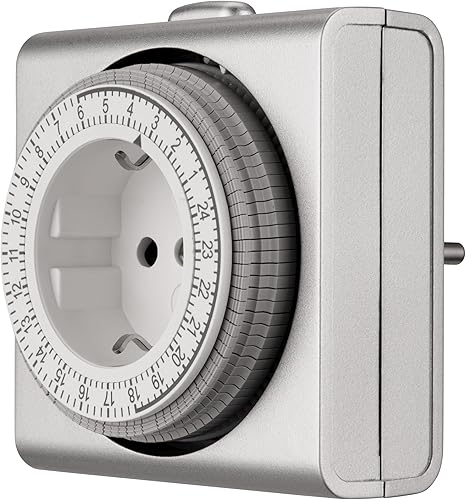 REV Zeitschaltuhr Steckdose – 24h Format, 96 Zeiten a 15min – mechanischer Timer Steckdose, 230VAC, max. 16A/3680W, anthrazit