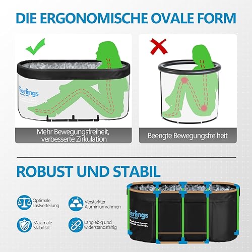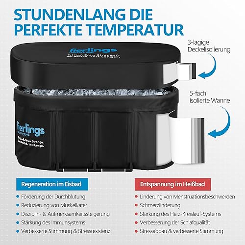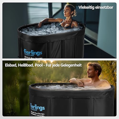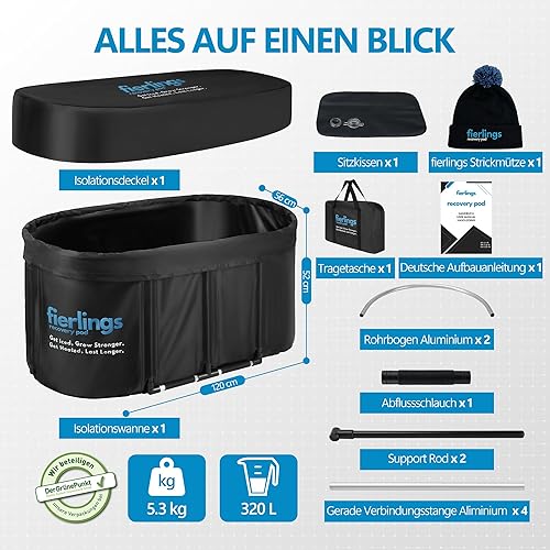 fierlings Premium 120 cm ovales Eisbad, Mobile Faltbare Badewanne mit 5 Isolierschichten und 3-lagigem Deckel, Eisfass für Innen und Außen, Eistonne Outdoor, Eisbaden Tonne, Ice Bath Komplettset