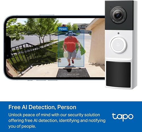 Tapo TP-Link D210 Video-Türklingel Akku (Video Doorbell) | Türklingel mit Kamera, 2K 3MP, Farbe Nachtsicht, Zwei-Wege-Audio, 6400mAh Nicht entfernbarer Akku, KI-Erkennung, Mit Chime