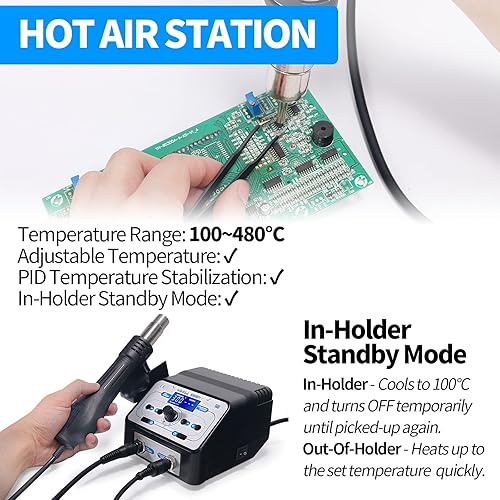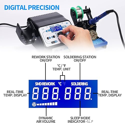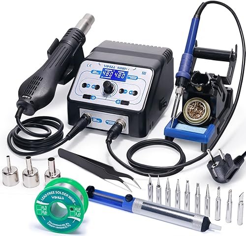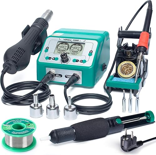 YIHUA 938BD+ I Heißluft lötstation Entlötstation Lötkolben station 2 In 1 mit einstellbarer Temp, Temp kalibrierung, Heißluft Start/Stop Ruhemodus LCD Display für Lötarbeiten (EU PLUG)