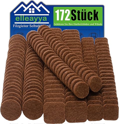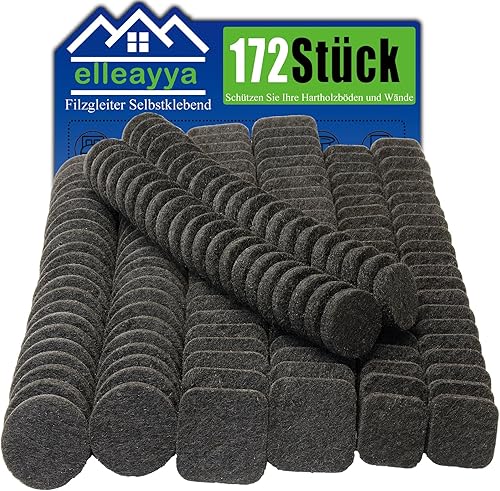 Selbstklebende Filzgleiter Für Stühle, Stuhl Filzgleiter (172 Stück: quadratische und Rund, Größen: 19mm und 25mm, Schwarz) Profi Möbelgleiter Filz Mit Klebkraft - Schützen Sie Ihre Holzfußböden