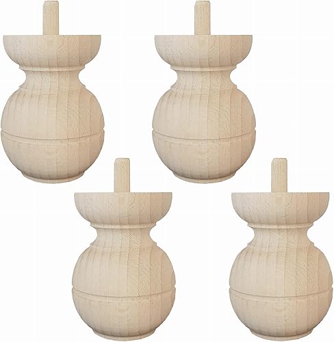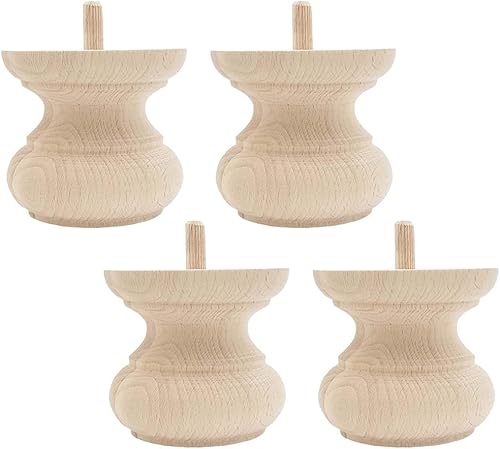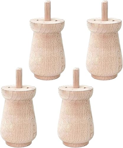 STOLMET Möbelbein aus Buchenholz Möbelfüße aus Holz Möbelfuß Unlackiert Sofa Couch Stuhl Ottomane Schrank 55 mm Höhe Rohholz 4 Stück TOE06