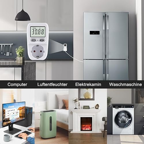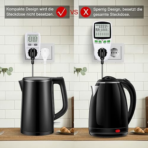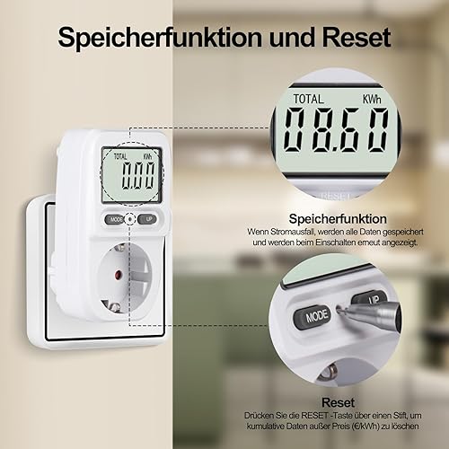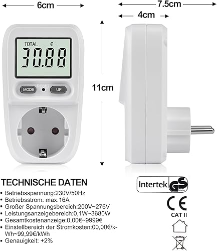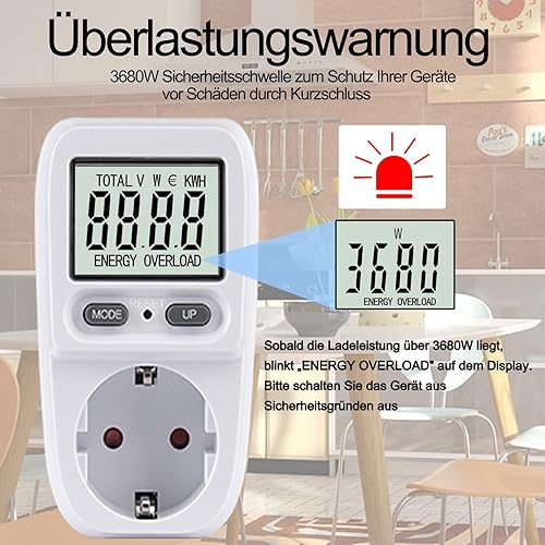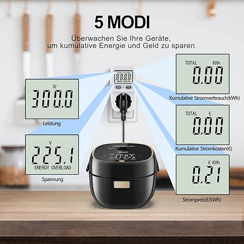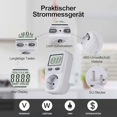 MECHEER Stromverbrauchsmesser Energiekostenmessgerät Stromzähler für Steckdose, Energiemessgerät Stromverbrauchszähler Strommessgerät 5 Modi LCD Wattmeter KWH Strommesser Überlastungswarnung 3680W