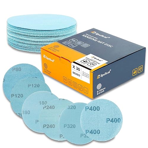 SpeTool 30 Stück Schleifgitter 150mm Klett schleifnetz Schleifscheiben mit Schleiftellerschoner Körnung 120 Staubfreies Klett-Schleifpapier für Holz, Gipskarton, Metall, Epoxidharz