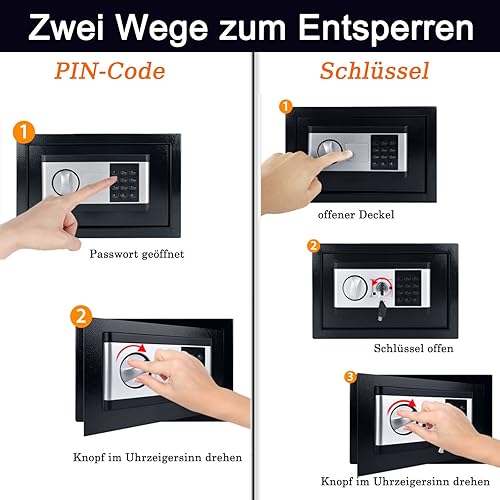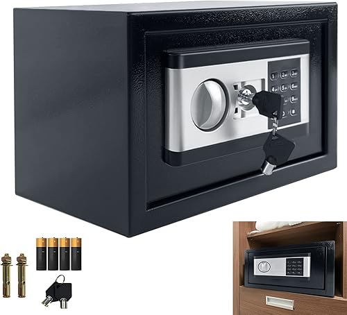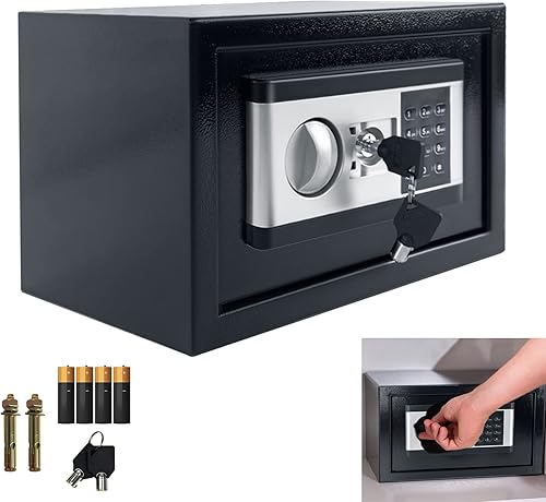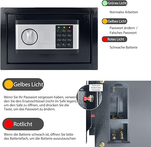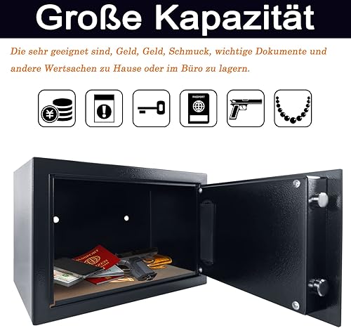 YRHome 34L Mini Tresor für Zuhause Safe Tresor mit Digitaler Passwort, Batteriebox, 2 Sicherheitsschlüssel, Alarmfunktionen Stahlsafe Safe-zubehör für Privathaushalte(34L, L)