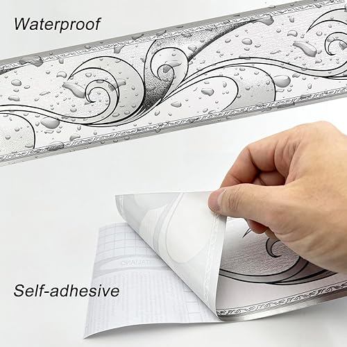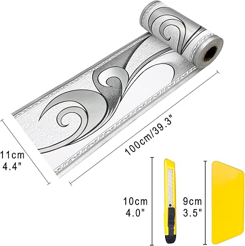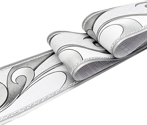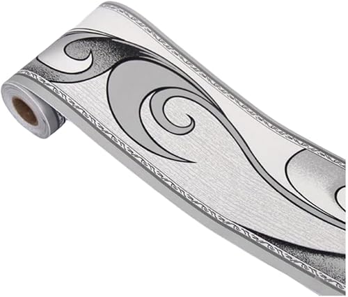 Angelkiss Tapetenbordüre, royales silbergraues Wellenmuster, Bordüre, abziehbare Wand-Deko, Decken-Aufkleber, Küche, Badezimmer, Wanddekoration, 11 cm x 10 Meter(2PCS)
