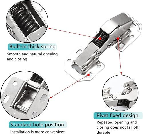 Schrankscharnier, 4 Pcs 175 Grad Türscharniere Rahmenlose Soft Close Scharniere mit Schrauben Versteckter hydraulischer Puffer Einstellbare Montage Scharniere für Küchenecke Falttür