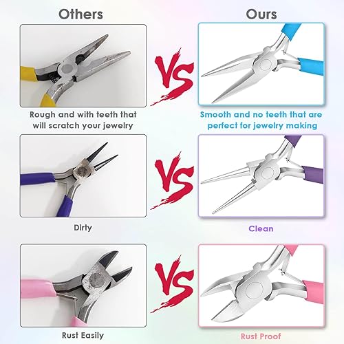 Shynek Schmuck Zangenset, 3 Stück Schmuckwerkzeuge Zangen Rundzange Spitzzange und Drahtzange für Schmuckherstellung, Schmuckreparatur, Drahtwicklung, DIY Handwerk