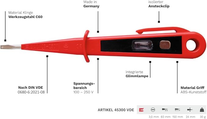 H + H Werkzeug 10 x Lampenfassungs-SET E27 + 1 x Spannungsprüfer/Phasenprüfer 45300 VDE (Baufassung Lampenfassung Renovierfassung Baustellenfassung)