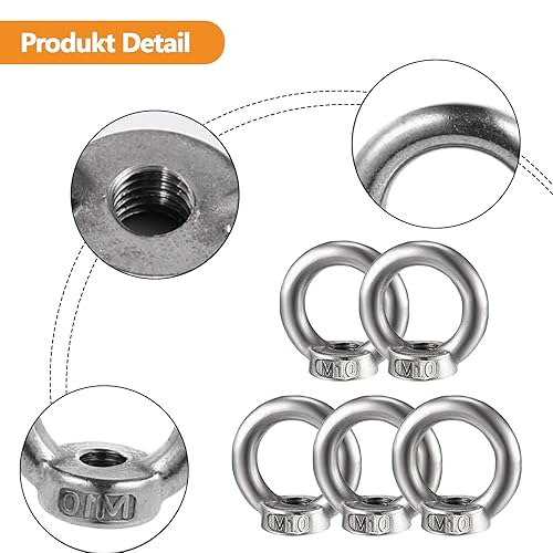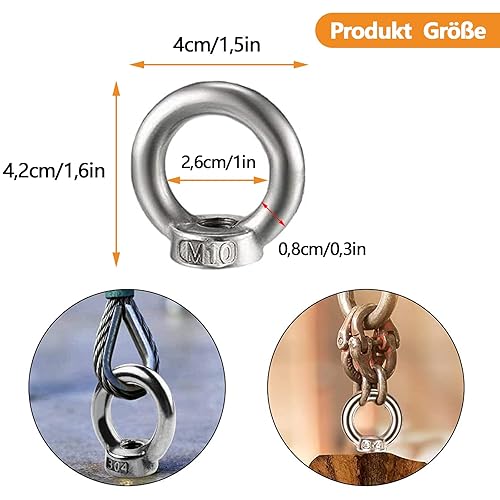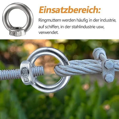 Ringmutter Edelstahl,10 Stück Ringmutter M10,Augenmutter,Edelstahl Augenmuttern,für Seilmontage, Hebezubehör, Oberflächenpolieren, Silber