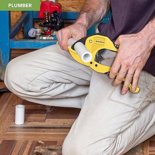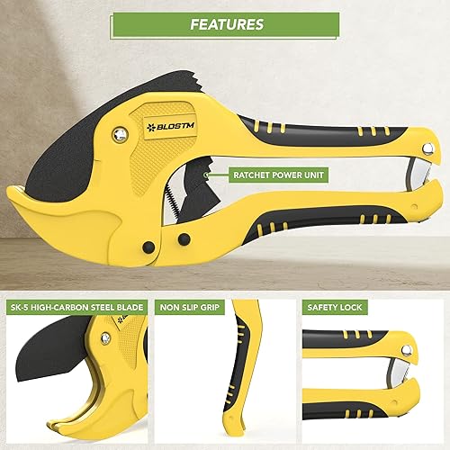 BLOSTM Kunststoff-Rohrschneider – robuste Ratschen-Rohrschneider mit 42 mm Außendurchmesser Schnittkapazität für PVC, PEX, PPR Kunststoffrohre und Gummischläuche – ergonomischer rutschfester Griff