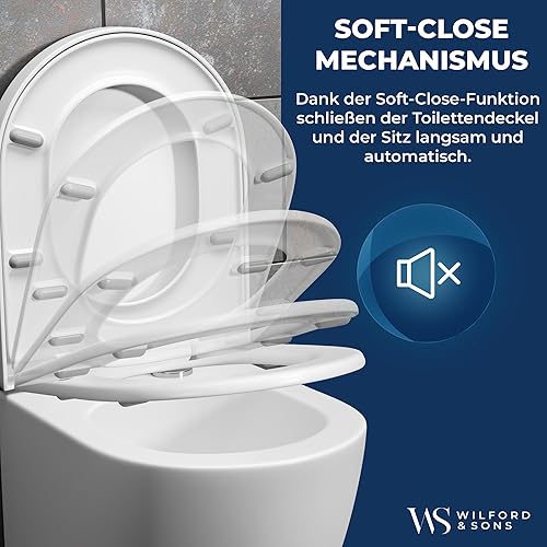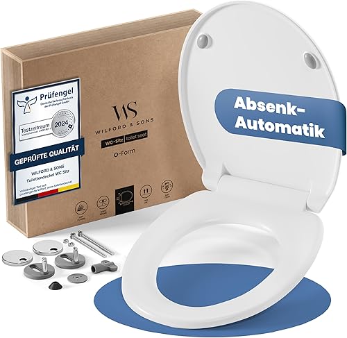 Wilford & Sons PREMIUM Toilettendeckel - WC Sitz mit Absenkautomatik - Klodeckel D-Form weiß - Hochwertige Klobrille, Toilettensitz Klo Deckel abnehmbar, Einfache Reinigung - Toilettenbrille Duroplast