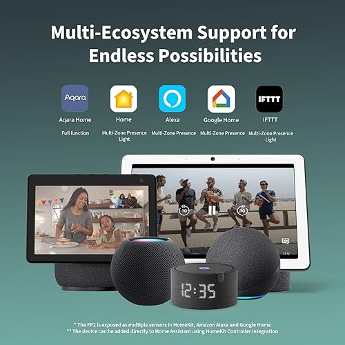 Aqara Anwesenheitssensor FP2, Kabelgebundener mmWave Radar Zonenpositionierung, Mehrpersonen- und Sturzerkennung, Funktioniert mit HomeKit, Alexa, Google Home, SmartThings und Home Assistant, PS-S02E