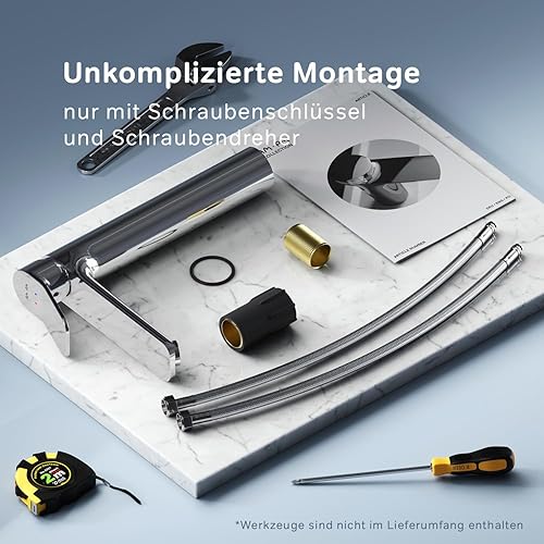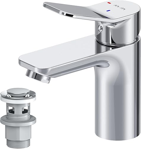 kisimixer Wasserhahn Bad Mischbatterie, Einhebelmischer Waschbecken Armaturen für Badezimmer, Modern Waschtischarmatur mit Geräuscharmem Keramischem Ventilkern, Chrom