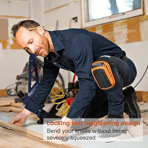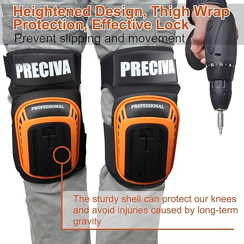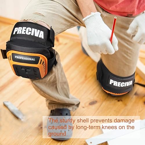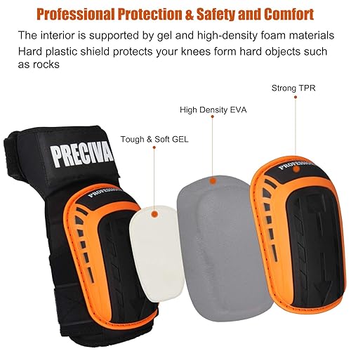 Preciva Knieschoner Professionell, robust, Schaumstoffpolsterung, mit bequemem Gelkissen und verstellbaren Gurten zum Arbeiten, Gärtnern und Konstruktionsarbeiten (orange)