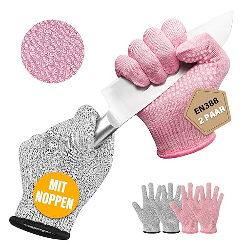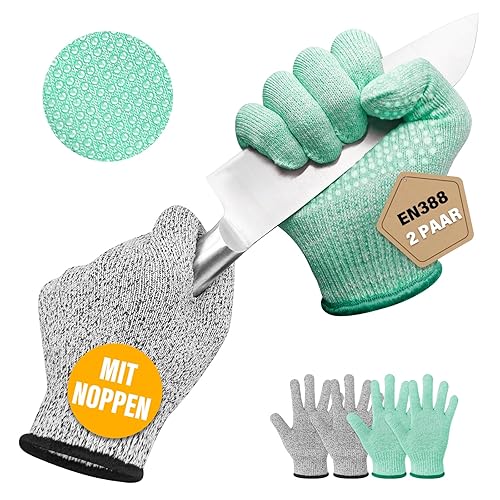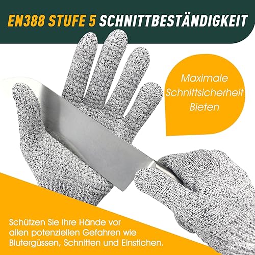 Migliore Wear 2 PAAR Schnittschutzhandschuhe Rutschfesten LEVEL 5 SCHUTZ Schnittfeste Handschuhe | EN 388 Schnittschutz Handschuhe Kettenhandschuh Küche Schnitzmesser mit Rutschfesten Noppen