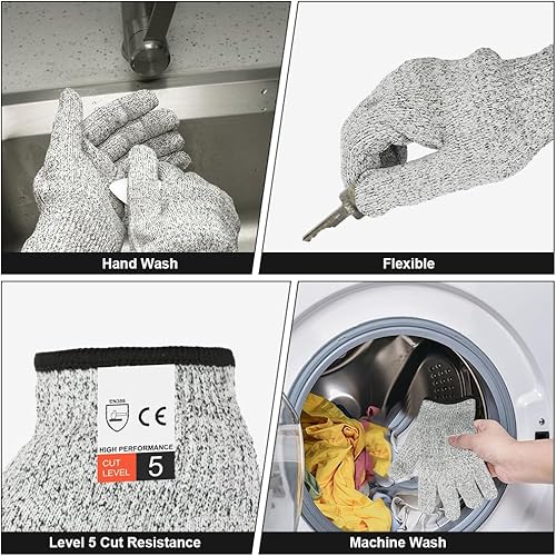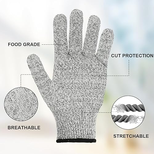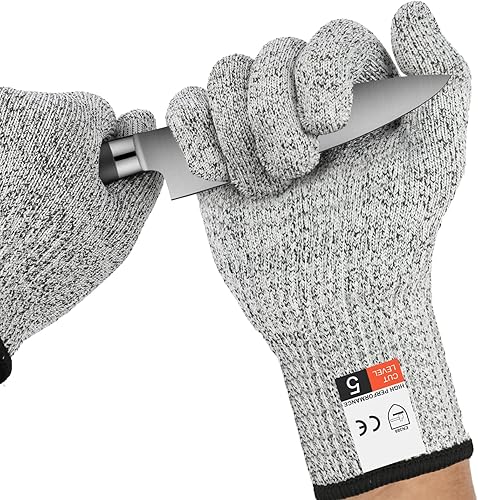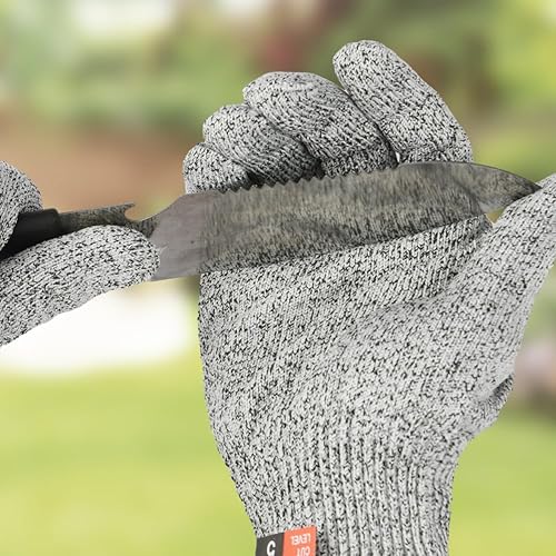 AUYAO Schnittschutzhandschuhe Universal Schnittschutzhandschuhe Level 5 Schutz Schnittfeste Handschuhe Täglichen Gebrauch Lebensmittelecht Küchenhandschuhe Arbeitshandschuhe Schnitzhandschuhe (Grau)