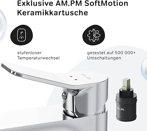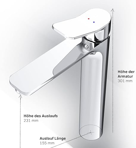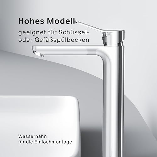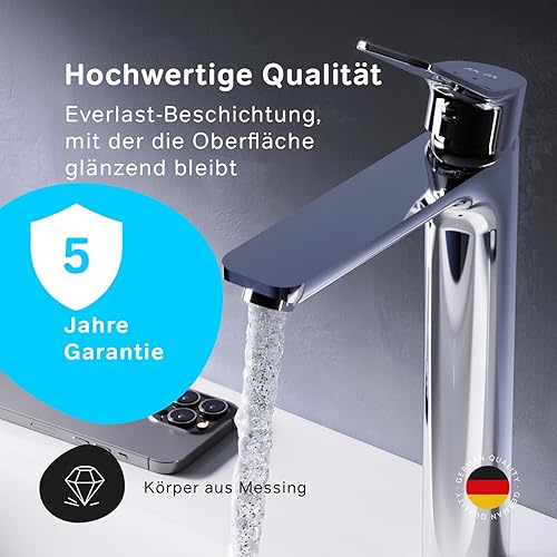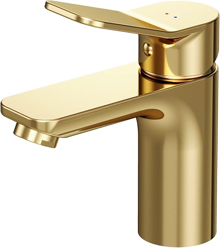 AM.PM X-Joy Waschtischarmatur Hoch Gold - Waschbeckenarmatur Einhebelmischer, Wasserhahn Bad, mit Auslaufhöhe 231 mm, Hohe Armatur für Aufsatzwaschbecken, Badarmatur