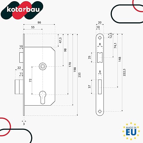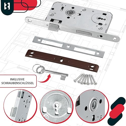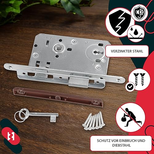 KOTARBAU® Einsteckschloss DIN Links Bunbartschlüssel Schloss Türschloss mit Gegenplatte Stahl Top-Qualität Rostfrei Robust Stahltürschloss 72 / 55mm