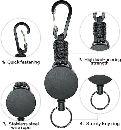 LISOPO 2pcs Schlüsselanhänger Ausziehbar Schlüsselband Ausweis Jojo Schlüsselanhänger Keyholder Band mit Karabiner und Paracord