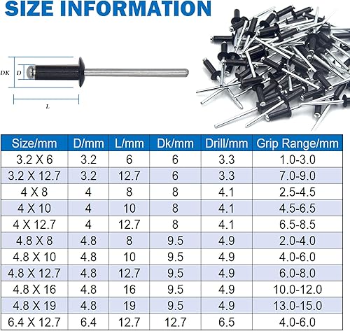 BESTYCHAO 100 Stück 4.8 x 8mm Aluminium-Blindnieten, Pop-Nieten mit offenem Ende, Packung mit 100 (Silber)