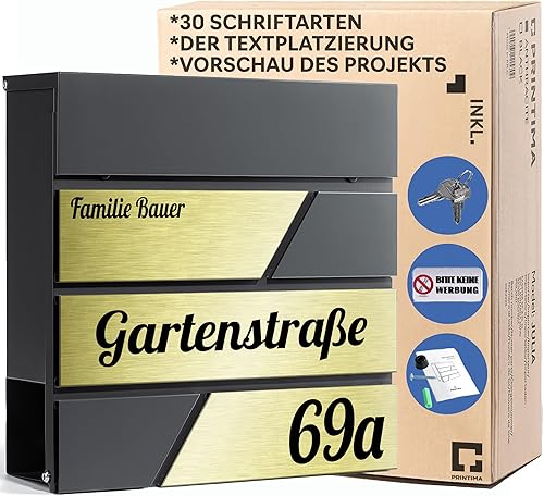 PRINTIMA Julia UV Briefkasten Anthrazit (RAL7016) mit Zeitungsfach: Wetterbeständigkeit, Funktion trifft auf Qualität und Stil