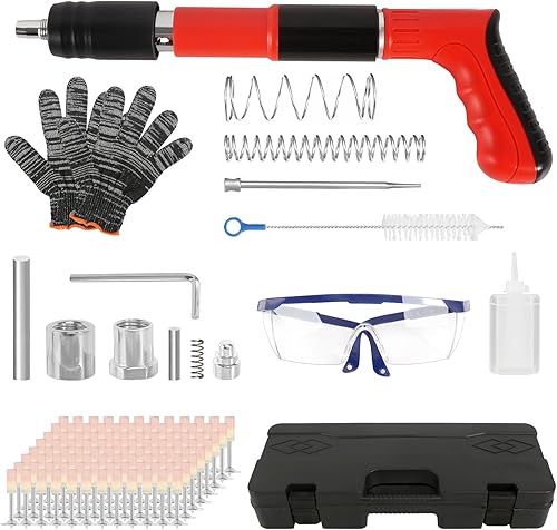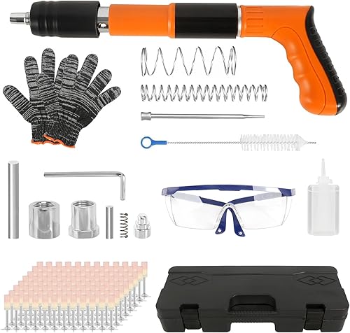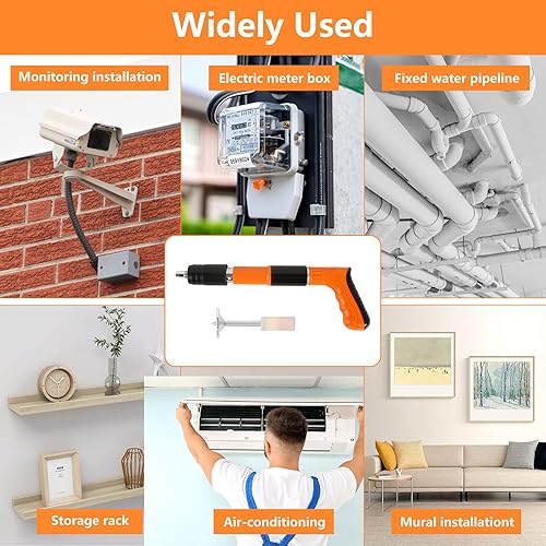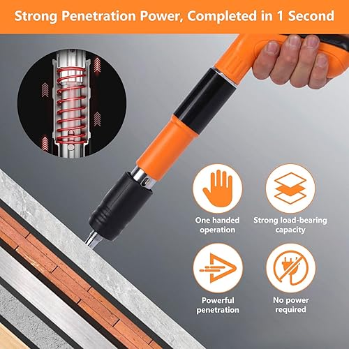 Manuelle Nagelpistole mit 200 Runden Nägeln, Nagelpistole für Stahl & Beton, Nail Gun Schalldämpfer Bolzenschussgerät 5 Gänge Nagelschussgerät Betonnagler Nagler Nail Tool Nagelpistole (Orange)