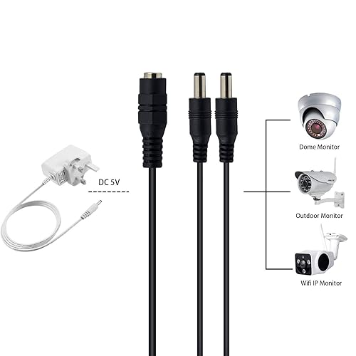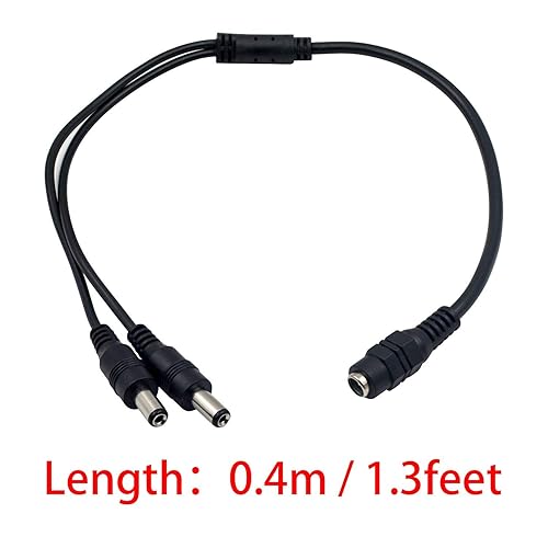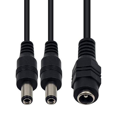 Duttek CCTV Strom Splitter Kabel, DC 5,5 x 2,1 mm, 1 Buchse auf 2 Stecker, Splitter Kabel, 2 Wege DC Netz Kabel, Y Splitter für CCTV Sicherheitskamera/IP Kamera/DVR Standalone/LED Streifen (40 cm)