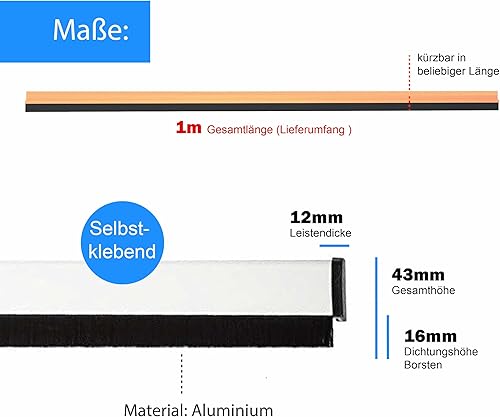 Automatik Türbodendichtung aus Aluminium Bürstendichtung in 2 Farben (Weiß)